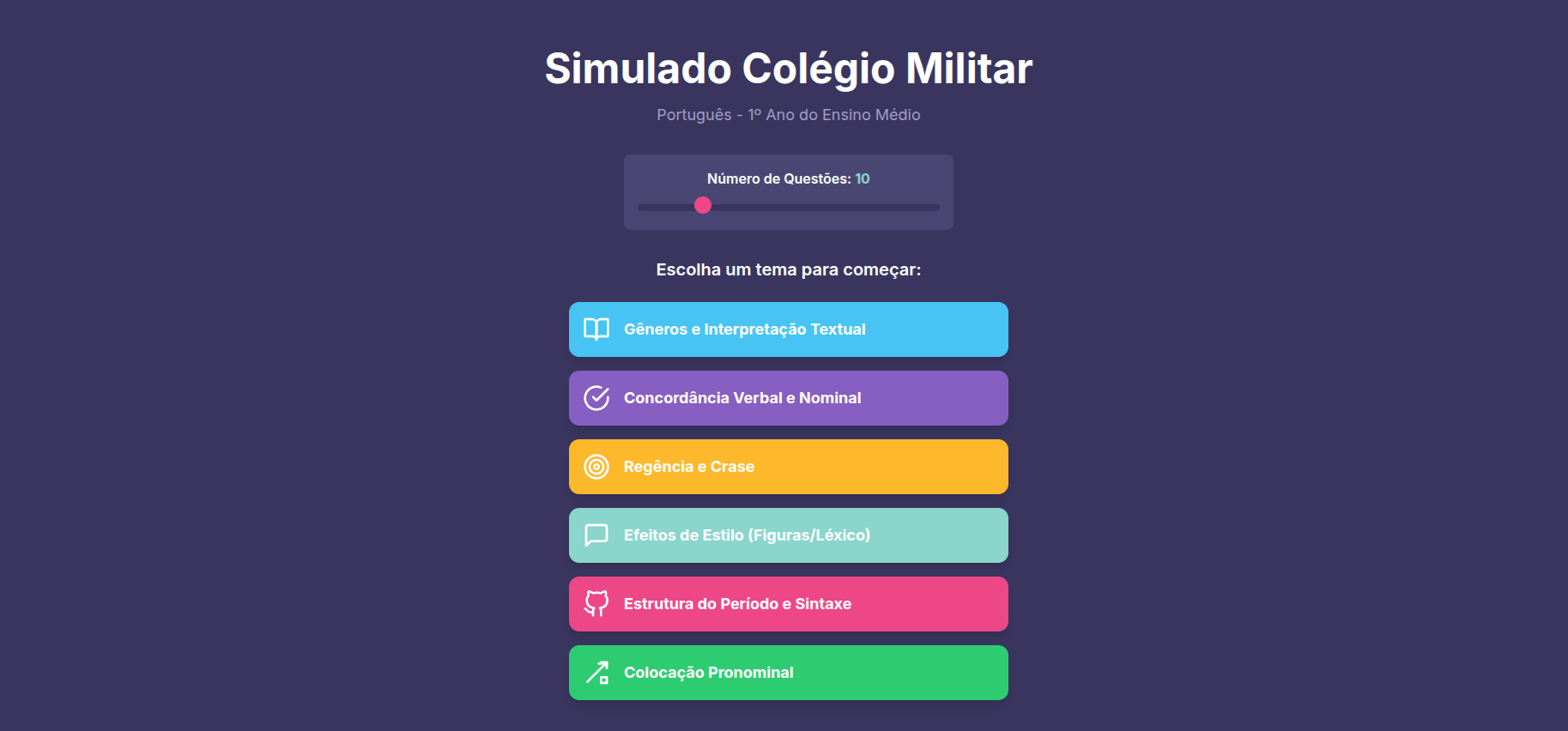 Simulado de português com questões de concursos anteriores do Colégio Militar de Santa Maria desenvolvida para auxiliar meu sobrinho nos estudos.