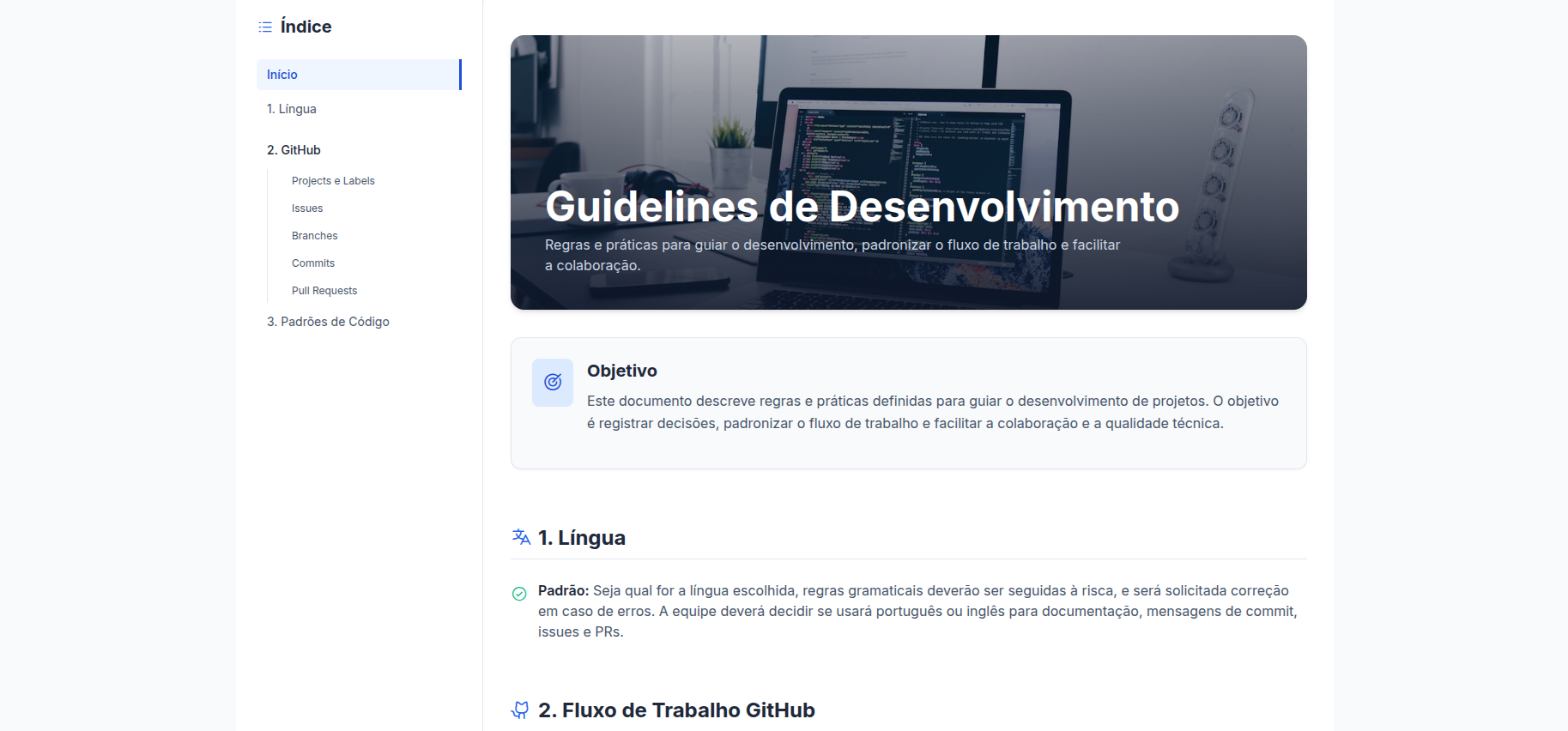 Guidelines de desenvolvimento, feitas para padronizar e organizar projetos em equipe da universidade.