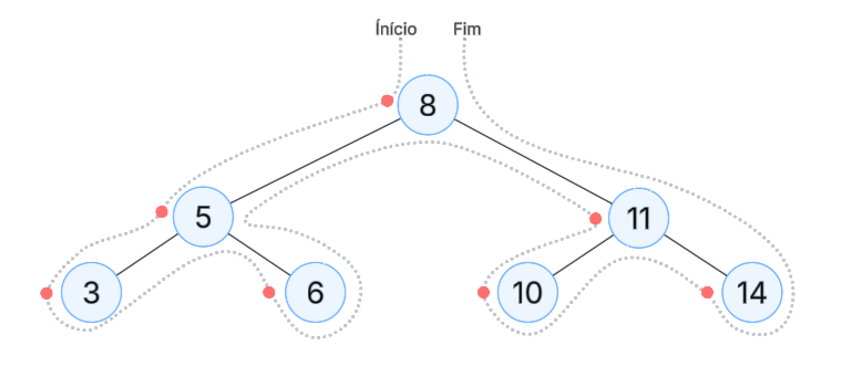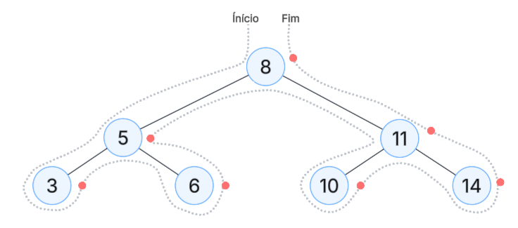 Ou esquerda, direita, raiz.
