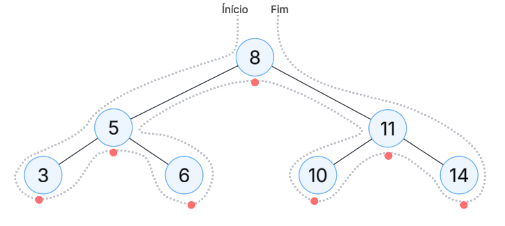 A travessia Em Ordem segue os passos: