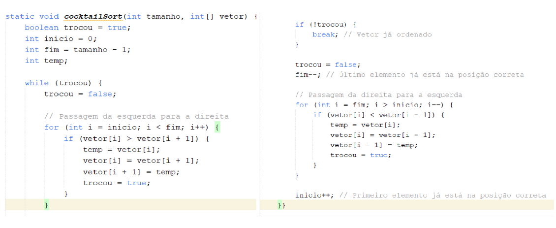 - Por mover para frente e para trás, o Cocktail Sort é mais rápido para trazer elementos que estão no final da lista para o início e vice-versa