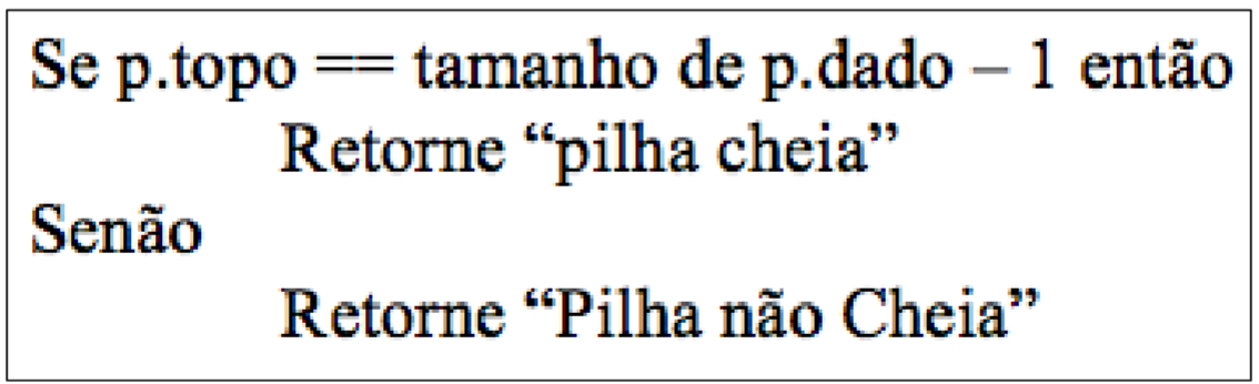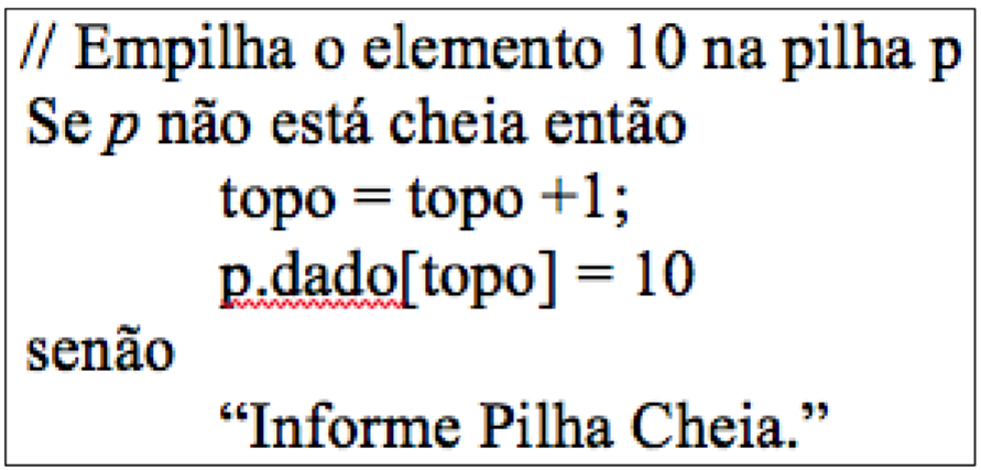 É importante verificar a realização do teste de “overflow” antes de efetivamente inserir o elemento na pilha. Este teste pode ser implementado da seguinte forma: