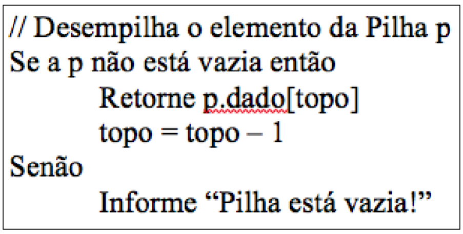Obs: Pode-se retornar o valor do topo no caso de não vazia.